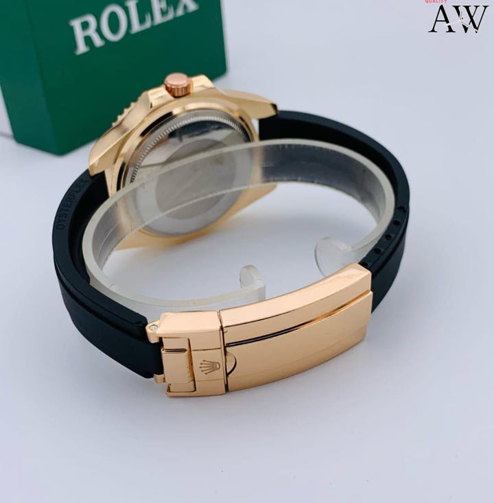 Strap: Black Oysterflex rubber strap with Everose gold clasp – a perfect balance of comfort and durability